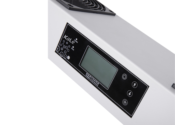 KL102C第六代智能型悬挂式双头离子风机由小风机提供风力,风力大小可在触摸按键或遥控器中进行调节。
